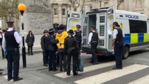 Șase protestatari au fost arestați sâmbătă la Londra în timp ce descărcau o dubă cu pancarte. Aceștia fac parte din...